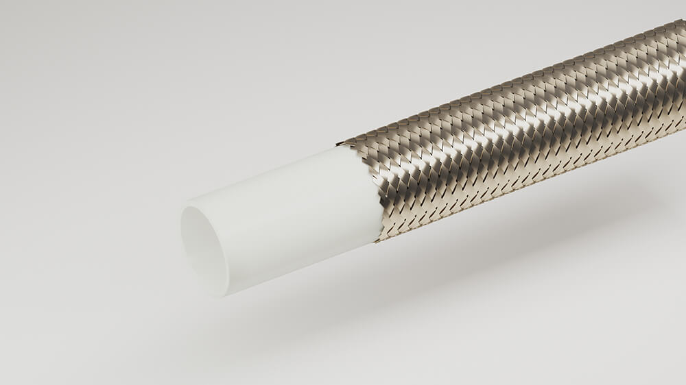 - Seamless, Smoothbore Teflon PTFE Natural liner reinforced with 304 Stainless Steel Weave Braid